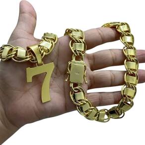 Cordão 15mm Dubai + Pingente 7 - Banhado a ouro Detalhes do Produto: Material: ligas metálicas de alta qualidade, especialmente tratadas para fixação e absorção do ouro, com acabamento em verniz protetor. Aparência: visual idêntico ao ouro maciço. Produção: artesanal, com atenção meticulosa aos detalhes. Banho: 10 camadas espessas de ouro 18k, finalizadas com verniz antialérgico . Elos: soldados varia conforme o modelo . Pedras: zircônias brilhantes cravejadas quando aplicável . Tamanhos Disponíveis: Cordões Masculinos: 70cm padrão e 60cm sob consulta/Pedido Via Chat . Cordões Femininos: 50cm padrão e 45cm sob consulta/Pedido Via Chat . Pulseiras: 21cm padrão ; tamanhos de 18cm a 23cm sob consulta/Pedido Via Chat. Pingentes: conforme imagens; consulte para mais detalhes via chat. Espessuras Recomendadas para Cordões / Pingentes: P: 1mm a 4mm M: 4mm a 8mm G: 6mm a 13mm Gg: 12mm a 18mm Incluso na Compra: Saquinho de organza para armazenamento seguro. Caixa elegante, perfeita para presente. Cupom de desconto para a próxima compra. Flyer com outros produtos da coleção. Carta de agradecimento personalizada. Adesivo da marca ToJoia18k. Informações Adicionais: : 6 meses termos acompanham o produto . Devolução: 7 dias para devolução sem questionamentos. Envio: despacho em até 24 horas úteis após confirmação do pagamento. Cuidados com a Peça: Evite contato com produtos químicos; aguarde o perfume secar antes de usar. Evite contato com shampoo, condicionadores e suor excessivo. Armazene em local seco, preferencialmente no saquinho de organza fornecido. Uso no mar e piscina é permitido; lave com água corrente e sabão neutro após. Por que Escolher a ToJoia18k Semi-joias luxuosas que combinam estilo, qualidade e sofisticação. Banho espesso de ouro 18k, garantindo brilho duradouro e acabamento impecável. Design exclusivo e produção artesanal, perfeitos para qualquer ocasião. Materiais premium que asseguram durabilidade. Ao escolher uma semi-joia ToJoia18k, você investe em qualidade, elegância e uma experiência única. Aguardamos sua compra Observação: pode ocorrer variação no fecho raramente . Imagens reais, sem edição. Qualquer dúvida, estamos à disposição para esclarecimentos.