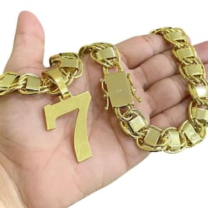 Cordão 15Mm Dubai + Pingente 7 - Banhado A Ouro