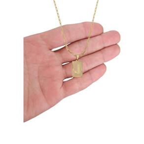 Corrente Colar Cordão modelo unissex pingente letra inicial J banhado em Ouro 18k. Colar com Pingente Retangular banhado em Ouro 18k com acabamento impecável que destaca ainda mais a beleza da peça. O pingente traz uma letra inicial personalizada, tornando-o uma joia exclusiva e carregada de significado. Delicado e sofisticado, este colar é perfeito para quem busca elegância e personalização em um só acessório, ideal para presentear ou usar em ocasiões especiais. Especificações do produto: Colar banhado a Ouro 18k. Antialérgico. Modelo do fecho do colar: lagosta. Espessura do colar: 2 mm. Peso do colar com o pingente: 4 g. Pingente letra inicial retangular banhado a Ouro 18k. Tamanho do pingente: 2,1 cm altura x 1,2 cm largura. Acompanha linda caixinha de presentes. Seguindo nossas orientações de uso no certificado de a joia permanecerá conservada por longos anos ou até décadas