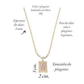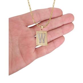 Corrente Colar Cordão modelo unissex pingente letra inicial W banhado em Ouro 18k.