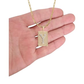 Corrente Colar Cordão modelo unissex pingente letra inicial Y banhado em Ouro 18k. Colar com Pingente Retangular banhado em Ouro 18k, com acabamento impecável em Ródio branco que destaca ainda mais a beleza da peça. O centro do pingente traz uma letra inicial personalizada, tornando-o uma joia exclusiva e carregada de significado. Delicado e sofisticado, este colar é perfeito para quem busca elegância e personalização em um só acessório, ideal para presentear ou usar em ocasiões especiais. Especificações do produto: Colar banhado a Ouro 18k. Antialérgico. Modelo do fecho do colar: lagosta. Espessura do colar: 2 mm. Peso do colar com o pingente: 6 g. Pingente letra inicial retangular com detalhes em Ródio branco banhado a Ouro 18k. Tamanho do pingente: 3 cm altura x 2 cm largura. Acompanha linda caixinha de presentes. Seguindo nossas orientações de uso no certificado de garantia a joia permanecerá conservada por longos anos ou até décadas Marca: Anaisa Semijoias