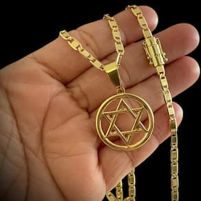 Cordão 5mm Piastrine + Pingente Estrela Davi Banhado a ouro Detalhes do Produto: Material: ligas metálicas de alta qualidade, especialmente tratadas para fixação e absorção do ouro, com acabamento em verniz protetor. Aparência: visual idêntico ao ouro maciço. Produção: artesanal, com atenção meticulosa aos detalhes. Banho: 10 camadas espessas de ouro 18k, finalizadas com verniz antialérgico . Elos: soldados varia conforme o modelo . Pedras: zircônias brilhantes cravejadas quando aplicável . Tamanhos Disponíveis: Cordões Masculinos: 70cm padrão e 60cm sob consulta/Pedido Via Chat . Cordões Femininos: 50cm padrão e 45cm sob consulta/Pedido Via Chat . Pulseiras: 21cm padrão ; tamanhos de 18cm a 23cm sob consulta/Pedido Via Chat. Pingentes: conforme imagens; consulte para mais detalhes via chat. Espessuras Recomendadas para Cordões / Pingentes: P: 1mm a 4mm M: 4mm a 8mm G: 6mm a 13mm Gg: 12mm a 18mm Incluso na Compra: Saquinho de organza para armazenamento seguro. Caixa elegante, perfeita para presente. Cupom de desconto para a próxima compra. Flyer com outros produtos da coleção. Carta de agradecimento personalizada. Adesivo da marca ToJoia18k. Informações Adicionais: : 6 meses termos acompanham o produto . Devolução: 7 dias para devolução sem questionamentos. Envio: despacho em até 24 horas úteis após confirmação do pagamento. Cuidados com a Peça: Evite contato com produtos químicos; aguarde o perfume secar antes de usar. Evite contato com shampoo, condicionadores e suor excessivo. Armazene em local seco, preferencialmente no saquinho de organza fornecido. Uso no mar e piscina é permitido; lave com água corrente e sabão neutro após. Por que Escolher a ToJoia18k Semi-joias luxuosas que combinam estilo, qualidade e sofisticação. Banho espesso de ouro 18k, garantindo brilho duradouro e acabamento impecável. Design exclusivo e produção artesanal, perfeitos para qualquer ocasião. Materiais premium que asseguram durabilidade. Ao escolher uma semi-joia ToJoia18k, você investe em qualidade, elegância e uma experiência única. Aguardamos sua compra Observação: pode ocorrer variação no fecho raramente . Imagens reais, sem edição. Qualquer dúvida, estamos à disposição para esclarecimentos. Marca: Tojoia18K