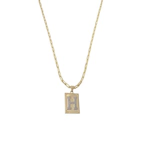 Corrente Colar Cordão modelo unissex pingente letra inicial H banhado em Ouro 18k. Colar com Pingente Retangular banhado em Ouro 18k, com acabamento impecável em Ródio branco que destaca ainda mais a beleza da peça. O centro do pingente traz uma letra inicial personalizada, tornando-o uma joia exclusiva e carregada de significado. Delicado e sofisticado, este colar é perfeito para quem busca elegância e personalização em um só acessório, ideal para presentear ou usar em ocasiões especiais. Especificações do produto: Colar banhado a Ouro 18k. Antialérgico. Modelo do fecho do colar: lagosta. Espessura do colar: 2 mm. Peso do colar com o pingente: 6 g. Pingente letra inicial retangular com detalhes em Ródio branco banhado a Ouro 18k. Tamanho do pingente: 3 cm altura x 2 cm largura. Acompanha linda caixinha de presentes. Seguindo nossas orientações de uso no certificado de garantia a joia permanecerá conservada por longos anos ou até décadas Marca: Anaisa Semijoias