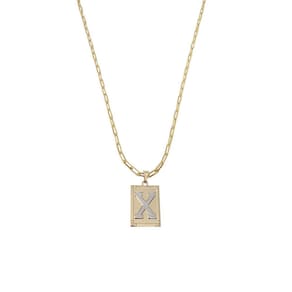 Corrente Colar Cordão modelo unissex pingente letra inicial X banhado em Ouro 18k. Colar com Pingente Retangular banhado em Ouro 18k, com acabamento impecável em Ródio branco que destaca ainda mais a beleza da peça. O centro do pingente traz uma letra inicial personalizada, tornando-o uma joia exclusiva e carregada de significado. Delicado e sofisticado, este colar é perfeito para quem busca elegância e personalização em um só acessório, ideal para presentear ou usar em ocasiões especiais. Especificações do produto: Colar banhado a Ouro 18k. Antialérgico. Modelo do fecho do colar: lagosta. Espessura do colar: 2 mm. Peso do colar com o pingente: 6 g. Pingente letra inicial retangular com detalhes em Ródio branco banhado a Ouro 18k. Tamanho do pingente: 3 cm altura x 2 cm largura. Acompanha linda caixinha de presentes. Seguindo nossas orientações de uso no certificado de garantia a joia permanecerá conservada por longos anos ou até décadas Marca: Anaisa Semijoias