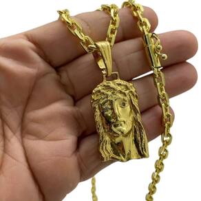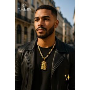 Cordão 6mm Cadeado + Pingente Jesus Face - Banhado a ouro Detalhes do Produto: Material: ligas metálicas de alta qualidade, especialmente tratadas para fixação e absorção do ouro, com acabamento em verniz protetor. Aparência: visual idêntico ao ouro maciço. Produção: artesanal, com atenção meticulosa aos detalhes. Banho: 10 camadas espessas de ouro 18k, finalizadas com verniz antialérgico . Elos: soldados varia conforme o modelo . Pedras: zircônias brilhantes cravejadas quando aplicável . Tamanhos Disponíveis: Cordões Masculinos: 70cm padrão e 60cm sob consulta/Pedido Via Chat . Cordões Femininos: 50cm padrão e 45cm sob consulta/Pedido Via Chat . Pulseiras: 21cm padrão ; tamanhos de 18cm a 23cm sob consulta/Pedido Via Chat. Pingentes: conforme imagens; consulte para mais detalhes via chat. Espessuras Recomendadas para Cordões / Pingentes: P: 1mm a 4mm M: 4mm a 8mm G: 6mm a 13mm Gg: 12mm a 18mm Incluso na Compra: Saquinho de organza para armazenamento seguro. Caixa elegante, perfeita para presente. Cupom de desconto para a próxima compra. Flyer com outros produtos da coleção. Carta de agradecimento personalizada. Adesivo da marca ToJoia18k. Informações Adicionais: : 6 meses termos acompanham o produto . Devolução: 7 dias para devolução sem questionamentos. Envio: despacho em até 24 horas úteis após confirmação do pagamento. Cuidados com a Peça: Evite contato com produtos químicos; aguarde o perfume secar antes de usar. Evite contato com shampoo, condicionadores e suor excessivo. Armazene em local seco, preferencialmente no saquinho de organza fornecido. Uso no mar e piscina é permitido; lave com água corrente e sabão neutro após. Por que Escolher a ToJoia18k Semi-joias luxuosas que combinam estilo, qualidade e sofisticação. Banho espesso de ouro 18k, garantindo brilho duradouro e acabamento impecável. Design exclusivo e produção artesanal, perfeitos para qualquer ocasião. Materiais premium que asseguram durabilidade. Ao escolher uma semi-joia ToJoia18k, você investe em qualidade, elegância e uma experiência única. Aguardamos sua compra Observação: pode ocorrer variação no fecho raramente . Imagens reais, sem edição. Qualquer dúvida, estamos à disposição para esclarecimentos. Marca: Tojoia18K