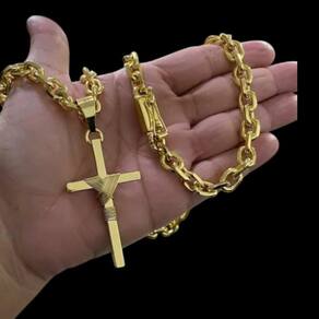 Cordão 8mm Cadeado + Pingente Cruz Fio - Banhado a ouro Detalhes do Produto: Material: ligas metálicas de alta qualidade, especialmente tratadas para fixação e absorção do ouro, com acabamento em verniz protetor. Aparência: visual idêntico ao ouro maciço. Produção: artesanal, com atenção meticulosa aos detalhes. Banho: 10 camadas espessas de ouro 18k, finalizadas com verniz antialérgico . Elos: soldados varia conforme o modelo . Pedras: zircônias brilhantes cravejadas quando aplicável . Tamanhos Disponíveis: Cordões Masculinos: 70cm padrão e 60cm sob consulta/Pedido Via Chat . Cordões Femininos: 50cm padrão e 45cm sob consulta/Pedido Via Chat . Pulseiras: 21cm padrão ; tamanhos de 18cm a 23cm sob consulta/Pedido Via Chat. Pingentes: conforme imagens; consulte para mais detalhes via chat. Espessuras Recomendadas para Cordões / Pingentes: P: 1mm a 4mm M: 4mm a 8mm G: 6mm a 13mm Gg: 12mm a 18mm Incluso na Compra: Saquinho de organza para armazenamento seguro. Caixa elegante, perfeita para presente. Cupom de desconto para a próxima compra. Flyer com outros produtos da coleção. Carta de agradecimento personalizada. Adesivo da marca ToJoia18k. Informações Adicionais: : 6 meses termos acompanham o produto . Devolução: 7 dias para devolução sem questionamentos. Envio: despacho em até 24 horas úteis após confirmação do pagamento. Cuidados com a Peça: Evite contato com produtos químicos; aguarde o perfume secar antes de usar. Evite contato com shampoo, condicionadores e suor excessivo. Armazene em local seco, preferencialmente no saquinho de organza fornecido. Uso no mar e piscina é permitido; lave com água corrente e sabão neutro após. Por que Escolher a ToJoia18k Semi-joias luxuosas que combinam estilo, qualidade e sofisticação. Banho espesso de ouro 18k, garantindo brilho duradouro e acabamento impecável. Design exclusivo e produção artesanal, perfeitos para qualquer ocasião. Materiais premium que asseguram durabilidade. Ao escolher uma semi-joia ToJoia18k, você investe em qualidade, elegância e uma experiência única. Aguardamos sua compra Observação: pode ocorrer variação no fecho raramente . Imagens reais, sem edição. Qualquer dúvida, estamos à disposição para esclarecimentos. Marca: Não Informado