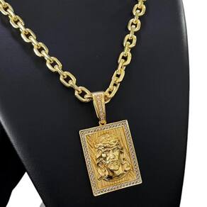 Cordão 8Mm Cadeado + Pingente Jesus Face - Banhado A Ouro