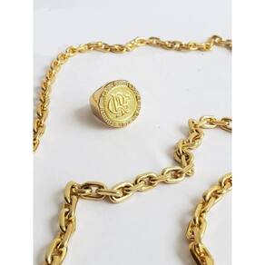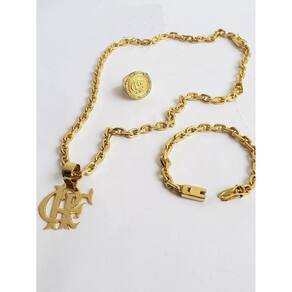 Este cordão da mk jóias possui aparência idêntica ao ouro 18k. A corrente modelo cadeado 8mm acompanha um anel e pingente do estilizado crf é banhada a ouro e composta de elos soldados. Com estas peças, você complementa o visual a partir de um acessório de boa aparência e um acabamento de qualidade. Características: - elos soldados - peças maciças - cor idêntica ao ouro 18k - acabamento de alta qualidade