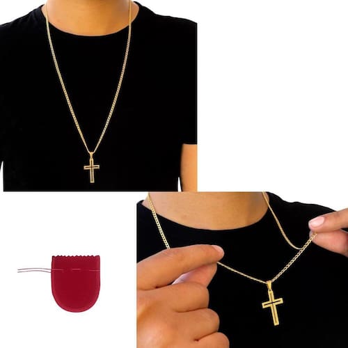 Elegância e fé em uma semijoia: corrente masculina banhada a ouro 18k com pingente de cruz vazada