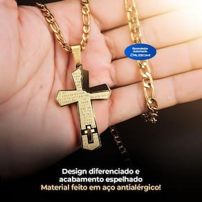 O Kit Corrente Cordão Dourado Banhado Aço Inox com Pingente Cruz Pai Nosso + Pulseira Dourada é mais do que uma joia; é uma manifestação de fé e estilo. Adquira agora este conjunto que combina elegância e espiritualidade de maneira única.