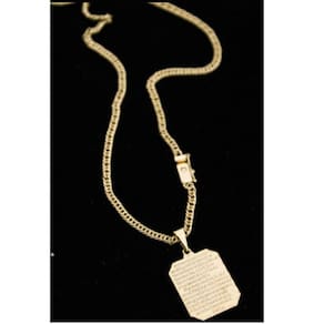 CORRENTE GRUMET DUPLO FECHO GAVETA LATERAL (3MM) & PINGENTE PAI NOSSO PLACA (P) - BANHADO EM OURO 18K