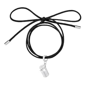 O Cordão de algodão é um acessório multifuncional, encerado com ponteiras prateadas. Este cordão acompanha um pingente maciço de latão de leite. Um acessório coringa que permite ser utilizado como pulseira ou colar.