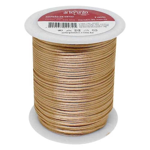 Cordao De Cetim 2mm 5 Metros Artepunto - Tamanho: Champagne