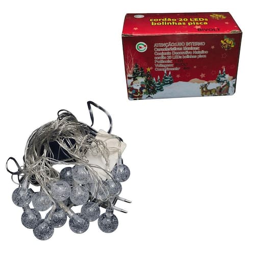 Cordão De Natal 20 Leds Bolinhas Pisca - Chibrali Ilumine suas festas com o Pisca LED Chibrali! Com 20 lâmpadas LED brilhantes e 4 metros de comprimento, este pisca cria um efeito cintilante e festivo. Bivolt e com fio transparente, ele se adapta a qualquer ambiente e pode ser em ambientes internos. Ideal para decorar árvores de Natal, varandas, festas e muito mais, o Pisca LED Chibrali é a escolha perfeita para criar um clima mágico e divertido Código: 094862 Dimensões aprox. da embalagem em cm:7x12x8 Peso liq. Aproximado do produto na embalagem: 196g Referência do modelo: 51004 Conteúdo da embalagem: 01 unidade Composição/material: 20% metal, 80% plástico Garantia: 90 dias contra de fabricação pelo fabricante. Imagens meramente ilustrativas. As cores e tonalidades podem variar. Tema - Criativa Meninas Meninos Natal Cor - Azul Branco Transparente/Incolor Material - Plástico Marca: Não Informado