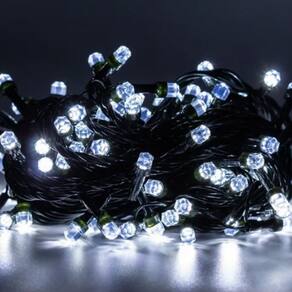 100 lâmpadas LED de luz branca para um brilho encantador.