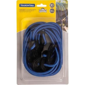 Cordão elástico com ganchos plásticos. Kit com 3 Peças. Ganchos em PVC. Elástico com diâmetro de 7mm. Comprimento: 1,5 m Não esticar o cordão acima de 70% do seu comprimento inicial. Para fixar e prender cargas leves, o Cordão Elástico Tramontina com Ganchos Plásticos 3 peças é o item certo. Com ganchos resistentes produzidos em PVC, possui 1,5 metros de comprimento e pode ser utilizado em carros, motos e bicicletas. Seu cordão de elástico garante mais qualidade e durabilidade durante o uso.