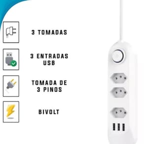 3 tomadas elétricas espaçadas para acomodar plugues grandes sem obstruções 3 entradas usb para carregar dispositivos móveis como smartphones e tablets Design compacto e leve, ideal para transporte e uso em diferentes ambientes Proteção contra surtos elétricos e sobrecargas, garantindo a segurança dos aparelhos conectados Compatível com redes elétricas 127v/220v, funcionando como bivolt automático Fusível de proteção integrado para evitar danos em caso de picos de energia Cabo de energia com comprimento ideal para facilitar o posicionamento
