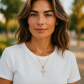 Cordão Feminino 1mm Cruz Gota - Banhado a Ouro 18k Detalhes do Produto: Material: ligas metálicas de alta qualidade, especialmente tratadas para fixação e absorção do ouro, com acabamento em verniz protetor. Aparência: visual idêntico ao ouro maciço. Produção: artesanal, com atenção meticulosa aos detalhes. Banho: 10 camadas espessas de ouro 18k, finalizadas com verniz antialérgico . Elos: soldados varia conforme o modelo . Pedras: zircônias brilhantes cravejadas quando aplicável . Tamanhos Disponíveis: Cordões Masculinos: 70cm padrão e 60cm sob consulta/Pedido Via Chat . Cordões Femininos: 50cm padrão e 45cm sob consulta/Pedido Via Chat . não são todos os modelos que teem o tamanho Feminino Pulseiras: 21cm padrão ; tamanhos de 18cm a 23cm sob consulta/Pedido Via Chat. Pingentes: conforme imagens; consulte para mais detalhes via chat. Espessuras Recomendadas para Cordões / Pingentes: P: 1mm a 4mm M: 4mm a 8mm G: 6mm a 13mm Gg: 12mm a 18mm Incluso na Compra: Saquinho de organza para armazenamento seguro. Caixa elegante, perfeita para presente. Cupom de desconto para a próxima compra. Flyer com outros produtos da coleção. Carta de agradecimento personalizada. Adesivo da marca ToJoia18k. Informações Adicionais: : 6 meses termos acompanham o produto . Devolução: 7 dias para devolução sem questionamentos. Envio: despacho em até 24 horas úteis após confirmação do pagamento. Cuidados com a Peça: Evite contato com produtos químicos; aguarde o perfume secar antes de usar. Evite contato com shampoo, condicionadores e suor excessivo. Armazene em local seco, preferencialmente no saquinho de organza fornecido. Uso no mar e piscina é permitido; lave com água corrente e sabão neutro após. Por que Escolher a ToJoia18k Semi-joias luxuosas que combinam estilo, qualidade e sofisticação. Banho espesso de ouro 18k, garantindo brilho duradouro e acabamento impecável. Design exclusivo e produção artesanal, perfeitos para qualquer ocasião. Materiais premium que asseguram durabilidade. Ao escolher uma semi-joia ToJoia18k, você investe em qualidade, elegância e uma experiência única. Aguardamos sua compra Observação: pode ocorrer variação no fecho raramente . Imagens reais, sem edição. Qualquer dúvida, estamos à disposição para esclarecimentos. Marca: Não Informado Ean: 7895968773027