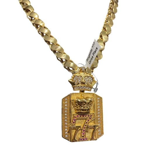 Cordão Friso S 13Mm + Pingente 777 Rosa - Banhado A Ouro