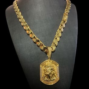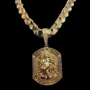 Cordão Friso S 13mm + Pingente Deus é Bom - Banhado a ouro