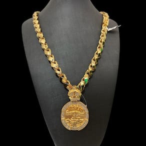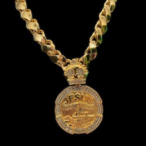 Cordão Friso S 13mm + Pingente Jesus Ceia - Banhado a ouro
