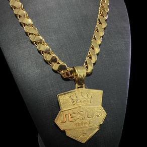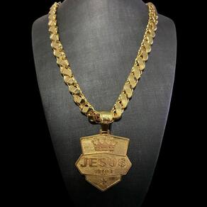 Cordão Friso S 13mm + Pingente Jesus Coroa - Banhado a ouro