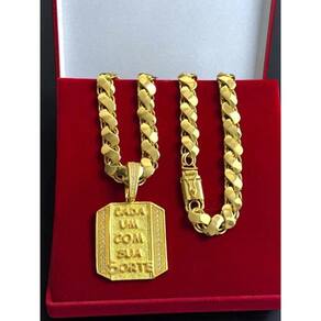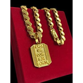 Cordão Friso s 13mm + Pingente Sorte - Banhado a Ouro Detalhes do Produto: Material: ligas metálicas de alta qualidade, especialmente tratadas para fixação e absorção do ouro, com acabamento em verniz protetor. Aparência: visual idêntico ao ouro maciço. Produção: artesanal, com atenção meticulosa aos detalhes. Banho: 10 camadas espessas de ouro 18k, finalizadas com verniz antialérgico . Elos: soldados varia conforme o modelo . Pedras: zircônias brilhantes cravejadas quando aplicável . Tamanhos Disponíveis: Cordões Masculinos: 70cm padrão e 60cm sob consulta/Pedido Via Chat . Cordões Femininos: 50cm padrão e 45cm sob consulta/Pedido Via Chat . Pulseiras: 21cm padrão ; tamanhos de 18cm a 23cm sob consulta/Pedido Via Chat. Pingentes: conforme imagens; consulte para mais detalhes via chat. Espessuras Recomendadas para Cordões / Pingentes: P: 1mm a 4mm M: 4mm a 8mm G: 6mm a 13mm Gg: 12mm a 18mm Incluso na Compra: Saquinho de organza para armazenamento seguro. Caixa elegante, perfeita para presente. Cupom de desconto para a próxima compra. Flyer com outros produtos da coleção. Carta de agradecimento personalizada. Adesivo da marca ToJoia18k. Informações Adicionais: : 6 meses termos acompanham o produto . Devolução: 7 dias para devolução sem questionamentos. Envio: despacho em até 24 horas úteis após confirmação do pagamento. Cuidados com a Peça: Evite contato com produtos químicos; aguarde o perfume secar antes de usar. Evite contato com shampoo, condicionadores e suor excessivo. Armazene em local seco, preferencialmente no saquinho de organza fornecido. Uso no mar e piscina é permitido; lave com água corrente e sabão neutro após. Por que Escolher a ToJoia18k Semi-joias luxuosas que combinam estilo, qualidade e sofisticação. Banho espesso de ouro 18k, garantindo brilho duradouro e acabamento impecável. Design exclusivo e produção artesanal, perfeitos para qualquer ocasião. Materiais premium que asseguram durabilidade. Ao escolher uma semi-joia ToJoia18k, você investe em qualidade, elegância e uma experiência única. Aguardamos sua compra Observação: pode ocorrer variação no fecho raramente . Imagens reais, sem edição. Qualquer dúvida, estamos à disposição para esclarecimentos.