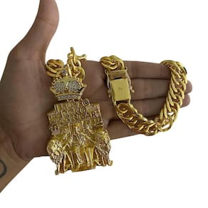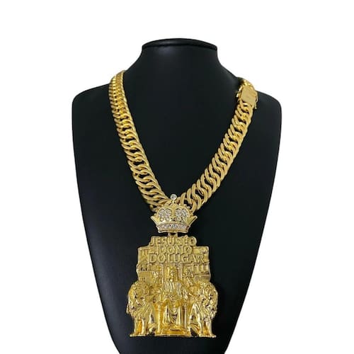 Cordão Grumet 15mm + Pingente Leão Jesus - Banhado a Ouro Detalhes do Produto: