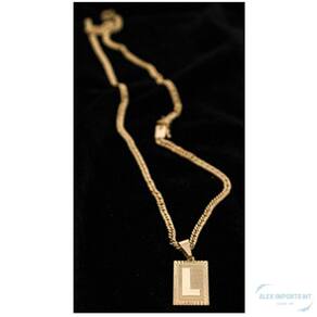 CORRENTE GRUMET DUPLO FECHO GAVETA LATERAL (3MM) & PINGENTE (LETRA) PERSONALIZADO (MINI) - BANHADO EM OURO 18K