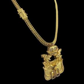 Cordão Lacraia 10mm + Pingente Visionário 00 Banhado a Ouro