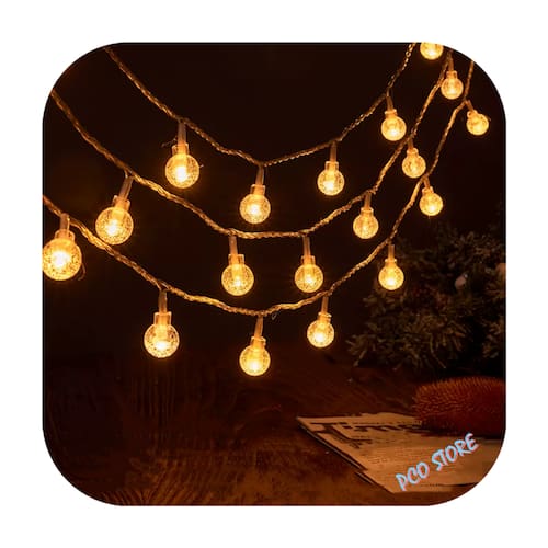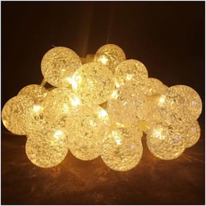 O cordão é composto de um fio com 30 bolinhas de 2,3 cm com lâmpadas Led, sua fonte é na tomada bivolts