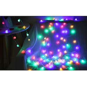 Cordão Led Fio Luz Varal 8f 80 Bolinhas Fio Transparente 8m Branco Quente e Colorido