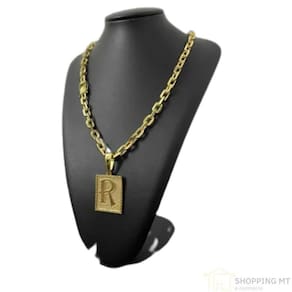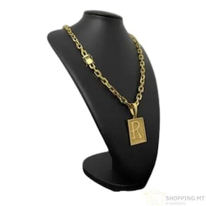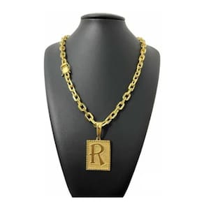 Cordão Maciço Cadeado 10mm + Pingente Letra Banhado Ouro 18k