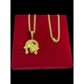 Cordão Piastrine 7Mm + Pingente Ferradura - Banhado A Ouro