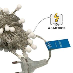 -não instalar em árvores que tenham arranjos, folhas ou galhos revestidos de metal ou metalizados; -não monte ou instale os fios de maneira que os mesmos possam ser danificados ou cortados; -manter fora do alcance de crianças. -4,5 Metros -110v -1,2W -0,02A -tamanho da Bolinha de LED: 1cm
