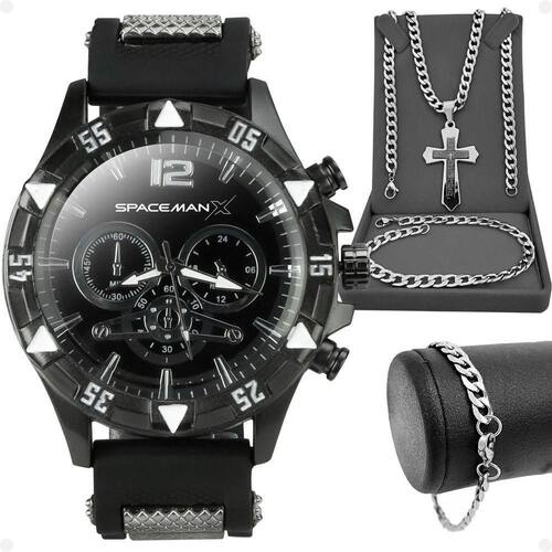 Cordão Prata Grumet + Relogio Masculino Aço Inox + Pulseira Kit Especial Orizom Spaceman X para Presentear Quem Você Ama! Surpreenda aquela pessoa especial em sua vida com este kit exclusivo, composto por: