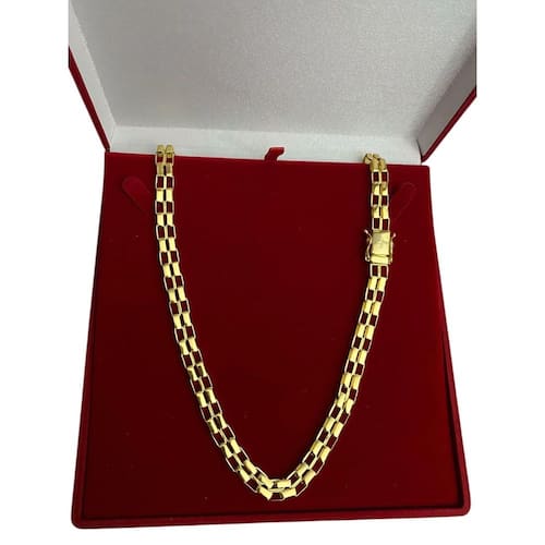 Cordão Tijolinho Duplo 12mm Banhado a Ouro Detalhes do Produto: Material: ligas metálicas de alta qualidade, especialmente tratadas para fixação e absorção do ouro, com acabamento em verniz protetor. Aparência: visual idêntico ao ouro maciço. Produção: artesanal, com atenção meticulosa aos detalhes. Banho: 10 camadas espessas de ouro 18k, finalizadas com verniz antialérgico . Elos: soldados varia conforme o modelo . Pedras: zircônias brilhantes cravejadas quando aplicável . Tamanhos Disponíveis: Cordões Masculinos: 70cm padrão e 60cm sob consulta/Pedido Via Chat . Cordões Femininos: 50cm padrão e 45cm sob consulta/Pedido Via Chat . não são todos os modelos que teem o tamanho Feminino Pulseiras: 21cm padrão ; tamanhos de 18cm a 23cm sob consulta/Pedido Via Chat. Pingentes: conforme imagens; consulte para mais detalhes via chat. Espessuras Recomendadas para Cordões / Pingentes: P: 1mm a 4mm M: 4mm a 8mm G: 6mm a 13mm Gg: 12mm a 18mm Incluso na Compra: Saquinho de organza para armazenamento seguro. Caixa elegante, perfeita para presente. Cupom de desconto para a próxima compra. Flyer com outros produtos da coleção. Carta de agradecimento personalizada. Adesivo da marca ToJoia18k. Informações Adicionais: : 6 meses termos acompanham o produto . Devolução: 7 dias para devolução sem questionamentos. Envio: despacho em até 24 horas úteis após confirmação do pagamento. Cuidados com a Peça: Evite contato com produtos químicos; aguarde o perfume secar antes de usar. Evite contato com shampoo, condicionadores e suor excessivo. Armazene em local seco, preferencialmente no saquinho de organza fornecido. Uso no mar e piscina é permitido; lave com água corrente e sabão neutro após. Por que Escolher a ToJoia18k Semi-joias luxuosas que combinam estilo, qualidade e sofisticação. Banho espesso de ouro 18k, garantindo brilho duradouro e acabamento impecável. Design exclusivo e produção artesanal, perfeitos para qualquer ocasião. Materiais premium que asseguram durabilidade. Ao escolher uma semi-joia ToJoia18k, você investe em qualidade, elegância e uma experiência única. Aguardamos sua compra Observação: pode ocorrer variação no fecho raramente . Imagens reais, sem edição. Qualquer dúvida, estamos à disposição para esclarecimentos. Marca: Não Informado
