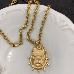 2. Pingente pitbull dourado folheado: O pingente pitbull é uma representação icônica deste amado cão. Banhado em ouro dourado, ele acrescenta um toque de luxo e destaque à sua semijoia.