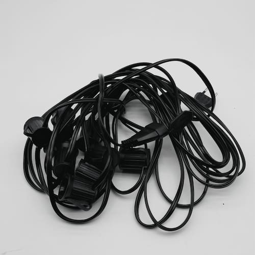 Cód: 80169Cordão Varal de Luzes Eco Preto 10E27 10M IP54Soquete: 10*E27 (Lâmpadas não inclusas)Comprimento: 10mDistância entre os soquetes: 100cmDimensões soquete: 4x3,5cm (AxL)Cor: PretoTensão: Bivolt*Uso Interno e Externo