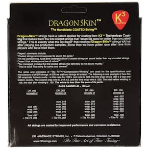 dsb5 – 40 Dragon cordas de luz 5 cordas graves revestido de pele. Dr. cordas Dragon pele cordas têm uma patente pendente proprietário revestimento de revestimento K3 tecnologia que os torna o primeiro revestidas cordas que "som tão bom ou melhor do que as cordas não revestido." Tecnologia K3 revestimento do Dr. é o primeiro revestimento que não faz desculpas e não excuses para não fornecendo um som igual ao revestido cordas. Os jogadores dizem que essas cordas têm mais volume, menos toques indesejados, maior clareza e articulação do padrão, cordas não revestido. Porém, elas fornecem o mesmo tom de proteção contra corrosão e transpiração, bem como uma maior vida que revestidas cordas são conhecidos por. Dr. feito à mão cordas combinam artesanato com os materiais muito melhor feito na América de antigamente. calibres 40 – 60 – 80 – 100 – 120.