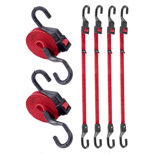 Cordões elásticos planos ajustáveis DESIGN AJUSTÁVEL ATUALIZADO Com design inovador de fivela, semelhante a uma fivela de ajuste de mochila, permite ajustes de comprimento rápidos e precisos em segundos. FÁCIL DE AJUSTAR DE 7,8" A 36" Flexível para amarrar sua carga. Livre para se ajustar ao comprimento desejado. Chega de cordas elásticas planas ajustáveis da WorrLuckyStraps podem ser esticadas até o dobro do tamanho autêntico, enquanto produtos similares só podem ser esticados até 1,5x. Feito com látex da melhor qualidade da Tailândia, que tem maior elasticidade, maior faixa de carga e maior vida útil. RESISTÊNCIA UV E DURABILIDADE O cordão elástico plano ajustável é enrolado em fio de polipropileno resistente a UV, garantindo durabilidade contra condições climáticas adversas e uso prolongado ao ar livre. Equipado com ganchos de aço pesados de 3 mm e revestimento de plástico durável, tornando-o ideal para proteger cargas pesadas. Fios, garantindo durabilidade contra condições climáticas adversas e uso prolongado ao ar livre. MULTIFUNCIONAL E O QUE VOCÊ OBTÉM Ideal para uso interno e externo, como bicicletários, bagageiros de teto de carros, acampamentos fixos, tendas e muito mais. Nossos cabos elásticos ajustáveis planos e resistentes vêm em vários comprimentos, variando de 12 polegadas a 100 polegadas. O que você ganha: pacote com 6 cordas elásticas planas ajustáveis, atendimento ao cliente 5 estrelas e uma política de devolução de 24 meses. - 3 vezes mais rápido para ajustar o comprimento - Nossa inovadora fivela de barra única, semelhante a uma fivela de ajuste de mochila, permite ajustes de comprimento rápidos e precisos. Ao contrário de produtos similares que exigem de 4 a 5 etapas, o nosso se ajusta em apenas 2 etapas. Esse design simples economiza tempo e esforço, facilitando o uso. - FÁCIL DE AJUSTAR DE 7,8" A 36" - Flexível para amarrar sua carga. Livre para se ajustar ao comprimento desejado. Não se preocupe mais com o cabo ser muito longo ou muito curto. - ELASTICIDADE SUPERIOR — As cordas elásticas planas ajustáveis LuckyStraps podem ser esticadas até o dobro do tamanho autêntico, enquanto produtos similares só podem ser esticados até 1,5. Feito com látex da melhor qualidade da Tailândia, que tem maior elasticidade, maior faixa de carga e maior vida útil. - RESISTÊNCIA UV E DURABILIDADE - O cordão elástico plano ajustável é enrolado em fio de polipropileno resistente a UV, garantindo durabilidade contra condições climáticas adversas e uso prolongado ao ar livre. Equipado com ganchos de aço de 3 mm para serviços pesados e revestimento de plástico durável, tornando-o ideal para proteger cargas pesadas. - MULTIFUNCIONAL E O QUE VOCÊ OBTÉM - Ideal para usos internos e externos, como bicicletários, bagageiros de teto de carros, acampamentos fixos, tendas e muito mais. Nossos cabos elásticos ajustáveis planos e resistentes vêm em vários comprimentos, variando de 12 polegadas a 100 polegadas. O que você ganha: pacote com 6 cordas elásticas planas ajustáveis de 36 polegadas, atendimento ao cliente 5 estrelas e uma política de devolução de 24 meses.