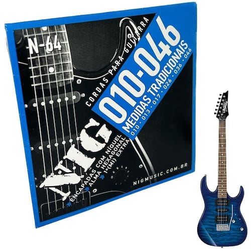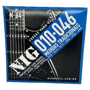 Cordas Guitarra Nig 10-46 + palheta + corda extra E mi Distribuidor Autorizado Está a procura de cordas de qualidade para a sua guitarra A linha de encordoamentos NIG vão te surpreender com o brilho no som, sustain e durabilidade. Proporcionam um timbre perfeito Utilizado por músicos em todo o Brasil - Tensão .010 - Leve - Encapadas com Nickel - Alma Hexagonal - Estanhadas e Polidas - contém 6 cordas + 1 corda E mi extra + 1 palheta Marca: Nig N64