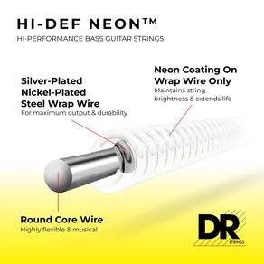 4 cordas de contrabaixo da Dr Strings NWB-45 DR NEON, médio, branco