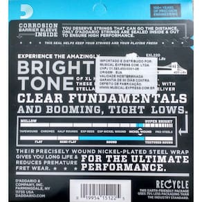 As cordas D’Addario EXL220 de tensão balanceada são feitas para contra Baixo de 4 cordas utilzando combinações de diâmetros precisamente otimizados, resultando em maior controle e conforto ao tocar. Combinadas com o timbre brilhante característico das cordas XL Nickel Wound, cada encordoamento oferece maior controle de dinâmicas e uma pegada mais consistente entre as cordas para otimizar os bends, palhetadas, ligaduras e o plucking.