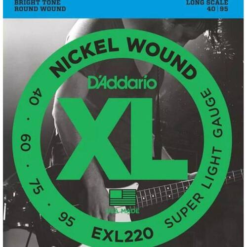 Imagem meramente ilustrativaCaracterísticas gerais:As EXL220 oferecem maior flexibilidade do que cordas padrões de baixo enquanto mantém a combinação entre timbre e pegada encontrada em todos os sets XL Nickel Wound. Serve para baixos de escalas longas com comprimento de até 36 1/4?
