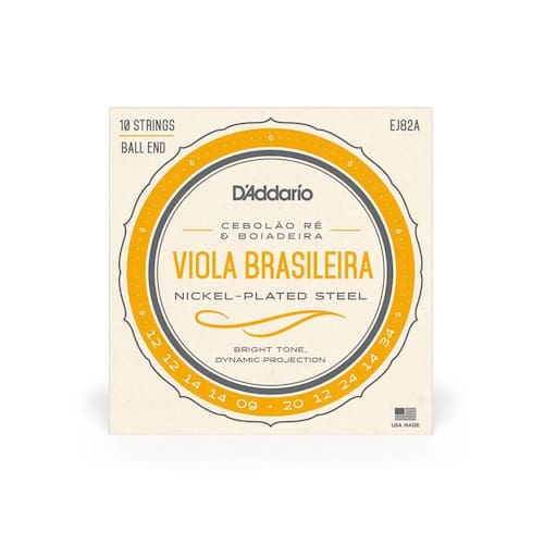 Modelo: EJ82AEncordoamento Para Viola Brasileira Cebolão RE/Boiadeira D Addario Nickel Plated Steel EJ82AA D Addario oferece encordoamentos exclusivamente dedicados aos amantes da viola! As cordas para viola D Addario possuem afinação perfeita e características ideais para essa musicalidade tão genuinamente brasileira.