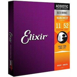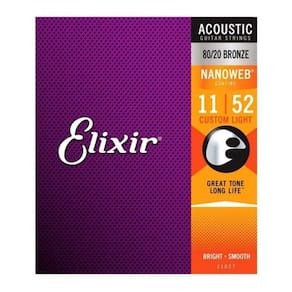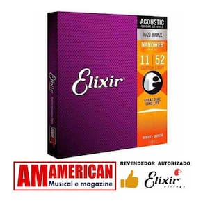Essas cordas Elixir® Strings proporcionam um timbre mais brilhante e vivo e soam como cordas de bronze 80/20 tradicionais.Compre menos jogos de corda. Troque com menor freqüência. Aprecie seu melhor som a todo instante. Elixir® Strings para violão possuem o mesmo toque, força e detalhes das cordas convencionais, ao mesmo tempo em que oferecem o melhor timbre que, de acordo com relato de musicos, dura mais do que qualquer outra corda, sem ou com revestimento. ESPECIFICAÇÕES: Revestimento: Nanoweb Fabricado e importado dos EUA Produto original, legalizado no Brasil. 3 meses de garantia Especificações: - 1ª E: 028mm / .011" - 2ª B: 0.38mm / .015" - 3ª G: 0.56m / .022" - 4ª D: 0.81mm / .032" - 5ª A: 1.07mm / .042" - 6ª E: 1.32mm / .052"
