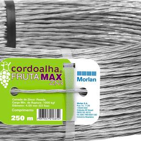 A Cordoalha Morlan Frutamax ZN3 é um cabo fabricado de arame de aço, com camada pesada de zinco e acabamento galvanizado. É rígida e indicada para uso na fruticultura ou em culturas aéreas, ideal para plantações suspensas, pois conta com proteção contra a corrosão causada pelos defensivos agrícolas. Possui resistência de 1000 kgf e diâmetro de 4,00 mm. Especificações: Uso: Culturas aéreas, fruticultura; Carga de ruptura: 1000 kgf; Diâmetro do fio: 4mm 3 fios ;