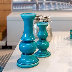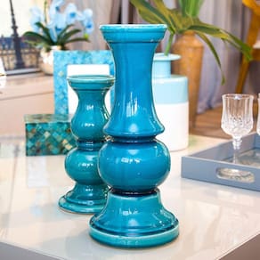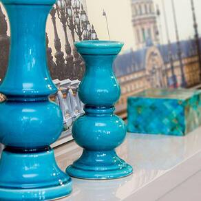 O castiçal da linha "Corella" é produzido em cerâmica de qualidade e pintado com um lindo azul celeste.