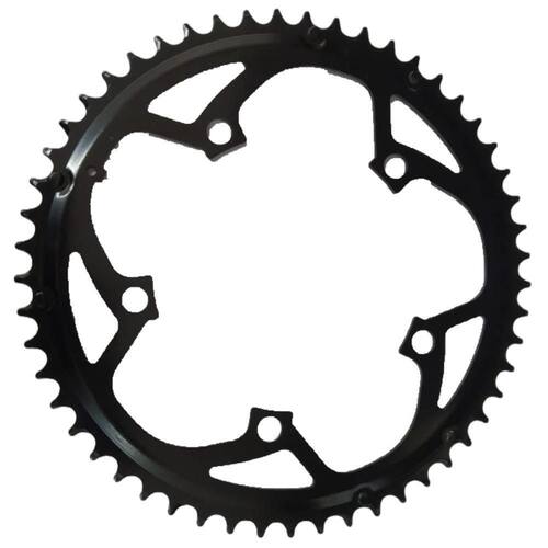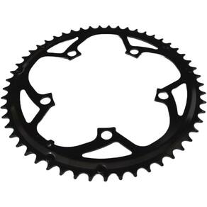 A Coroa Absolute 53 dentes, com especificações de aço, 5 furos e BCD 130, é uma opção robusta e durável, ideal para ciclistas que buscam maior resistência e confiabilidade em suas pedaleiras. Aqui estão os detalhes das características mencionadas: Características :53 Dentes: A coroa possui 53 dentes, uma escolha popular para ciclistas que procuram alta performance em velocidade, especialmente em terrenos planos ou em corridas de estrada. Coroas com 53 dentes são projetadas para proporcionar alta cadência e eficiência em altas velocidades.Aço: A coroa é feita de aço, material conhecido por sua extrema resistência e durabilidade. Embora o aço seja mais pesado que o alumínio como o 7075 , ele oferece uma vida útil muito mais longa e maior resistência ao desgaste, sendo uma boa opção para condições de uso mais intensas, como em mountain bikes ou para ciclistas que buscam maior robustez em seus componentes.5 Furos BCD 130 : O padrão BCD 130 mm significa que a coroa tem 5 furos de fixação dispostos em um círculo com diâmetro de 130 mm. Esse é um padrão bastante comum para coroas de pedivela de estrada, oferecendo uma montagem segura e estável. O BCD 130 mm é compatível com muitas pedivelas de estrada e outras opções de pedais de alta performance. Resumo das Características:Coroa de 53 dentes: Ideal para altas velocidades.Material: Aço, conhecido por sua resistência e durabilidade, mas com maior peso que alumínio.5 furos com BCD 130 mm: Padrão de fixação comum em bicicletas de estrada. A Coroa Absolute 53 dentes é uma excelente opção para quem busca durabilidade e resistência, mesmo que com um peso um pouco mais elevado em relação às coroas de alumínio. Ela é especialmente indicada para ciclistas que realizam longas distâncias ou que precisam de uma coroa mais forte, capaz de resistir a condições adversas de uso. Itens Inclusos:1 Coroa Absolute 53 Dentes Bike Speed Road